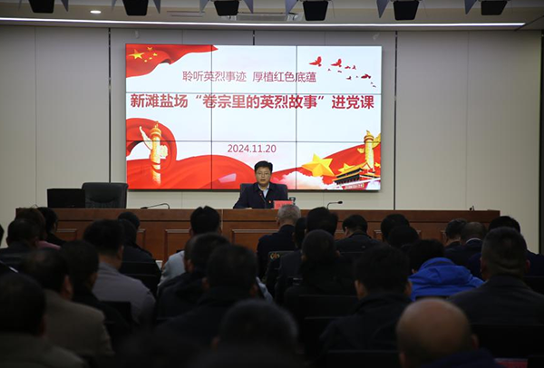 為進一步引導(dǎo)廣大黨員銘記歷史,致敬英雄,堅定理想信念,傳承紅色基因,近日,新灘鹽場以“黨員統(tǒng)一活動日”為契機,邀請濱??h人民法院和濱??h新四軍研究會走進新灘鹽場黨課課堂,開展“卷宗里的英烈故事”紅色文化宣講。2024-11-26