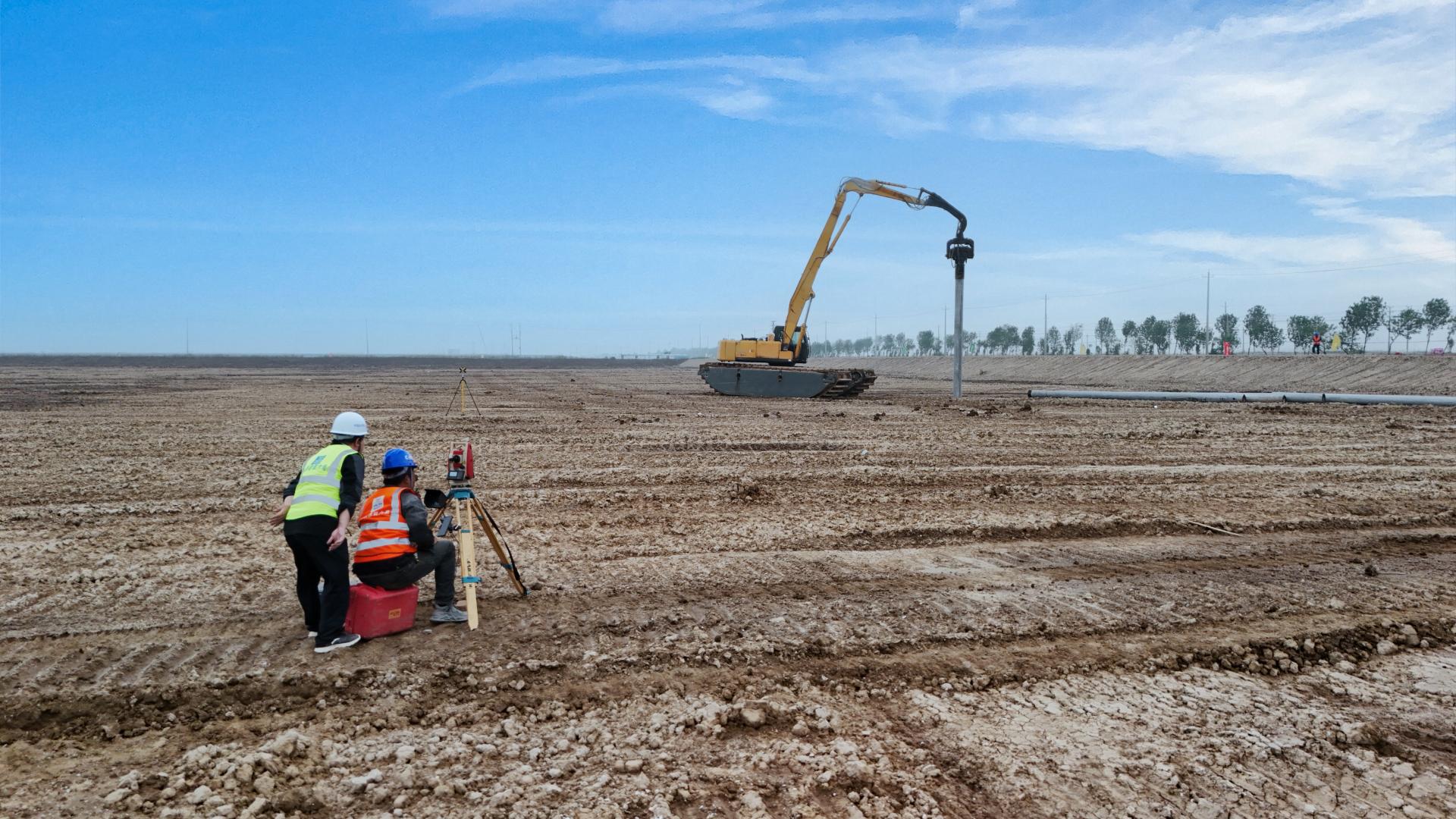 一線傳真∣按下“啟動鍵” 向綠注新能!興東120MW漁光互補發(fā)電項目首根樁基成功打入