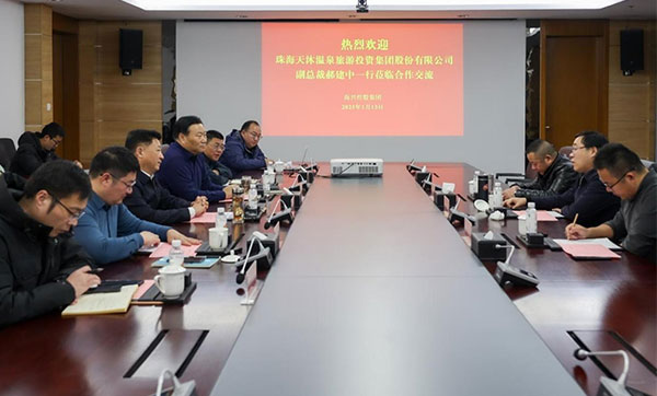 1月13日下午,集團(tuán)黨委書記、董事長董毅會(huì)見天沐溫泉旅游投資集團(tuán)股份有限公司副總裁郝建中一行,雙方就月亮灣度假區(qū)海濱溫泉酒店項(xiàng)目合作開展交流探討。2025-01-15 -