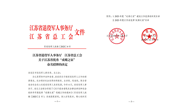 近日,江蘇省退役軍人事務(wù)廳、江蘇省總工會聯(lián)合發(fā)布了《關(guān)于優(yōu)秀“戎耀之家”命名授牌的決定》,鹽城市灌東鹽場發(fā)展有限公司被授予“2023年度江蘇省優(yōu)秀‘戎耀之家’”。2024-01-02