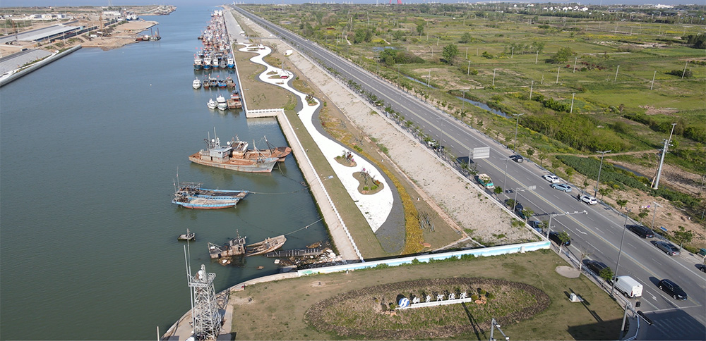 翻身河漁港升級(jí)改造項(xiàng)目按照國(guó)家一級(jí)漁港標(biāo)準(zhǔn)規(guī)劃建設(shè),改造后的陸域面積達(dá)88萬(wàn)平方米,水域面積達(dá)30萬(wàn)平方米,最寬處達(dá)220米。水工部分設(shè)有1942米海堤、1345米護(hù)岸、2210米碼頭泊位。其中北側(cè)護(hù)岸779米,碼頭泊位1242米,南側(cè)護(hù)岸566米,碼頭泊位968米,共設(shè)置泊位66個(gè),南北兩側(cè)各33個(gè),合計(jì)可并排應(yīng)急停靠約1000艘270馬力的漁船。南岸碼頭為休息待泊泊位,北岸為生產(chǎn)性泊位,具有卸魚、加油、加冰、加水等功能,總投資約3.4億元(不含征地拆遷費(fèi)用)。
