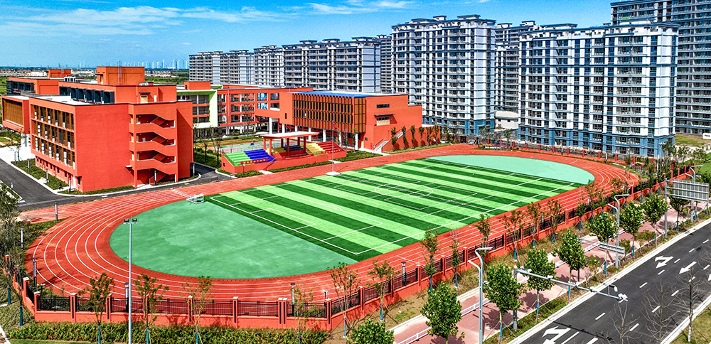 位于港城安置區(qū)一期B區(qū)南側(cè),占地面積46.5畝,建筑面積約2.2萬(wàn)平方米,總投資約1.5億元。建設(shè)規(guī)模滿足36個(gè)班級(jí)1620人的辦學(xué)需求。項(xiàng)目總體布局采用院落式布局,包含教學(xué)樓、綜合樓、風(fēng)雨操場(chǎng)、門(mén)衛(wèi)、看臺(tái)五個(gè)單位工程。校園建筑整體為哈弗紅現(xiàn)代風(fēng)格、局部點(diǎn)綴彩色形體,增添活躍元素。